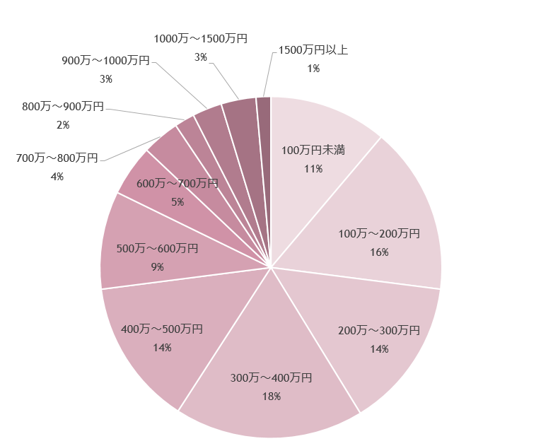 参考までに、以下は2023年に発表された翻訳者の年収分布をグラフにしたものです。副業・専業さまざまな方がいるので、年収の幅も大きいですね。